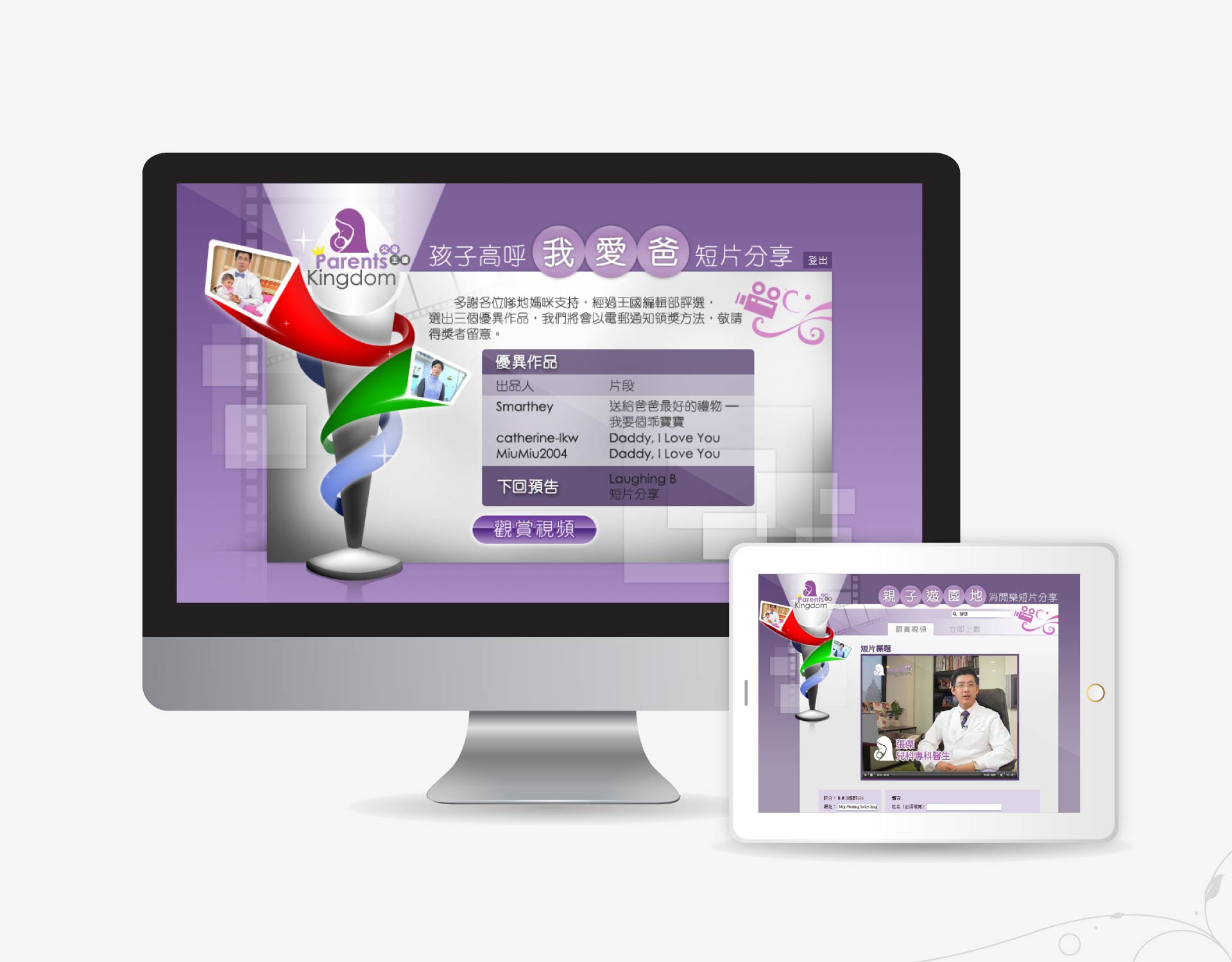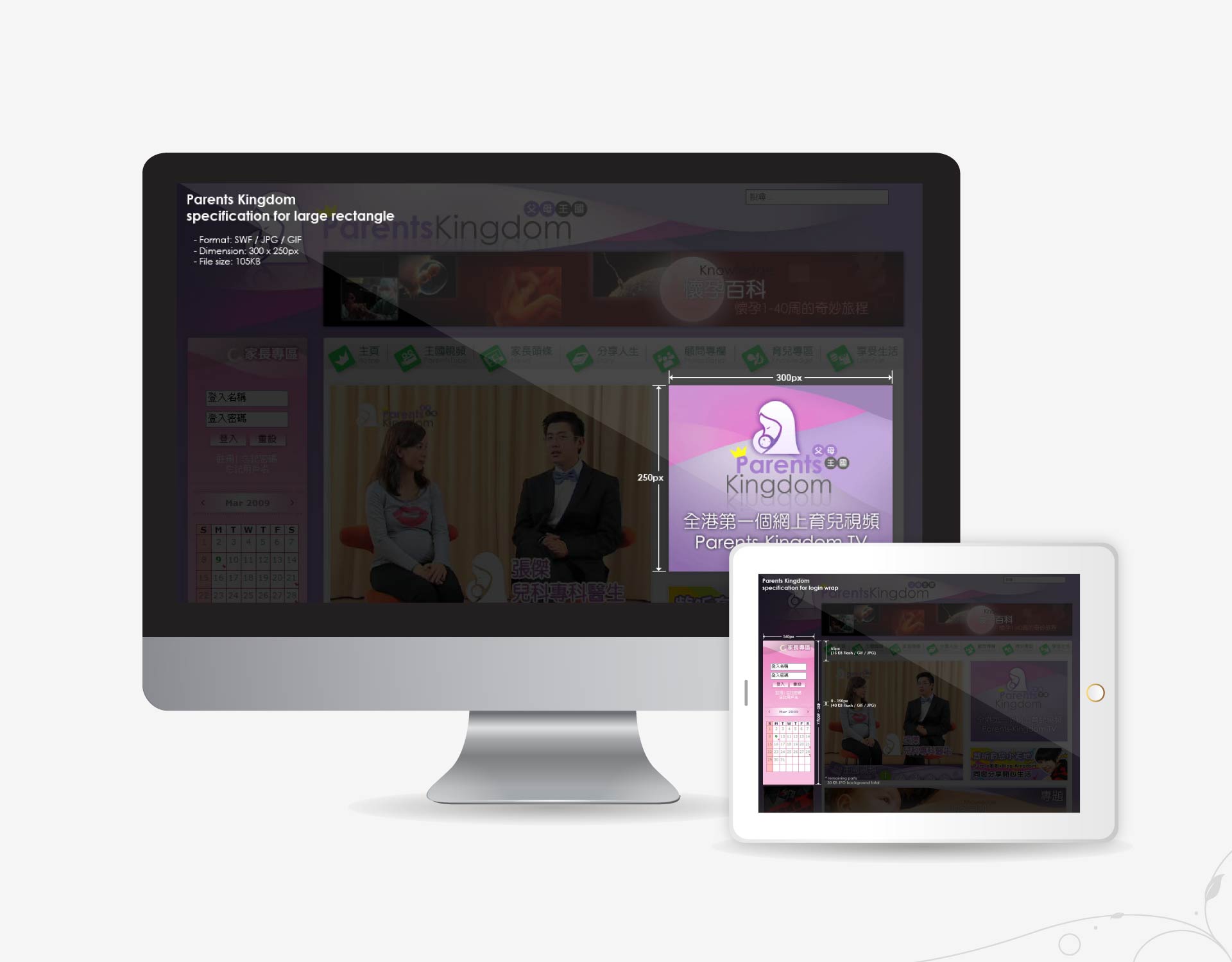 A new portal I was in-charge of, featuring online parental video tubes, when I was in charge of the design department of Baby Kingdom.
