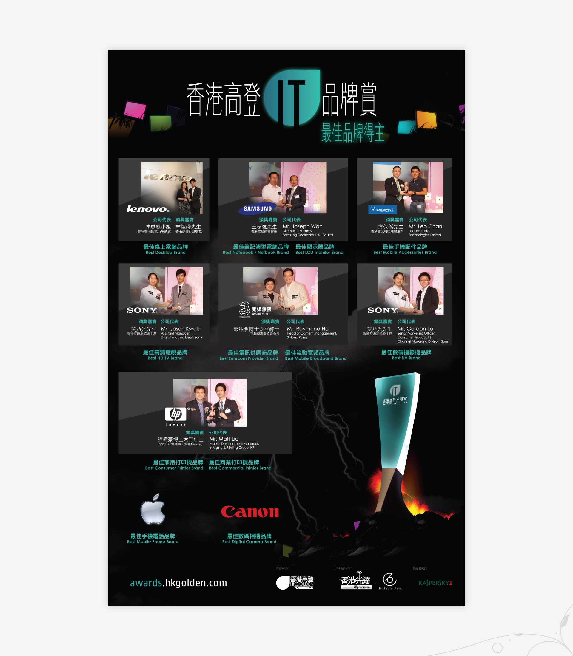 | print/advertising | - | newspaper advertisement, letterhead, event graphics (signage, mic and name tags etc.), guest souvenirs and PowerPoint template for award presentation |