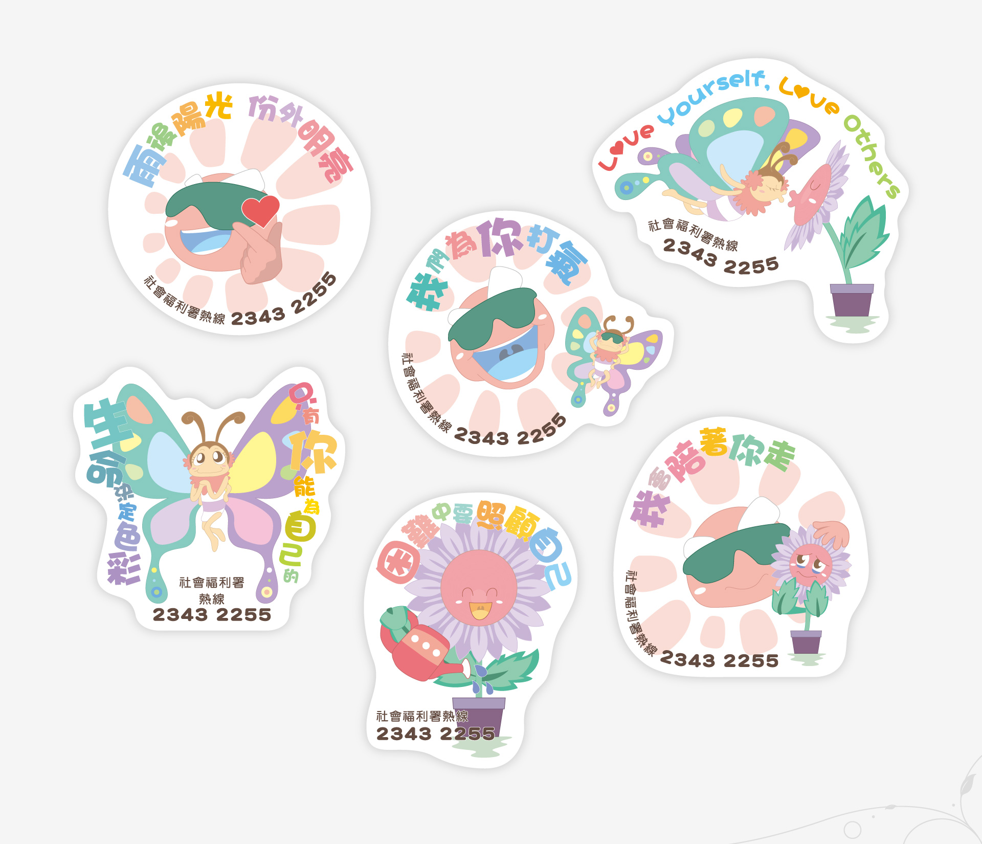 Character designs and some related souvenir designs for Social Welfare Department, HKSAR.