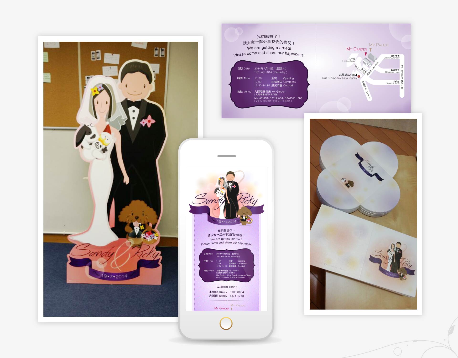| print/advertising | - | invitation cards, gift cards, CD cover, wedding backdrop, illustration stand and wedding rundown sheet |
